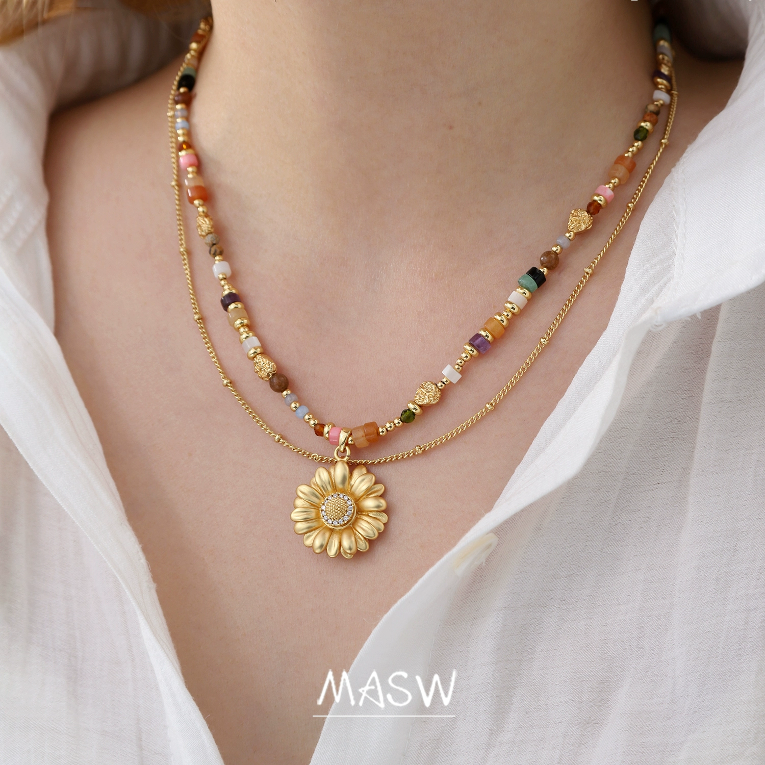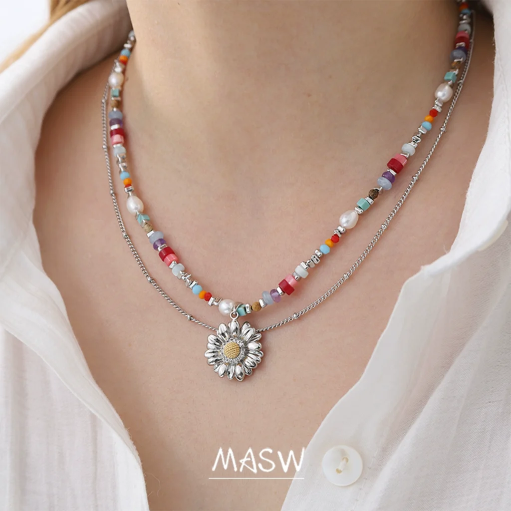 The MASW Colorful Beaded Collar Chain Daisy Double – Layer Necklace is more than just a piece of jewelry—it’s a versatile fashion statement that blends elegant design, meticulous craftsmanship, and playful charm. Whether you’re a fan of daily elegance, bohemian styles, or simply want to add a touch of uniqueness to your look, this necklace delivers. Its ability to transition from daily wear to special occasions, coupled with MASW’s commitment to original design, makes it a valuable addition to any jewelry collection.