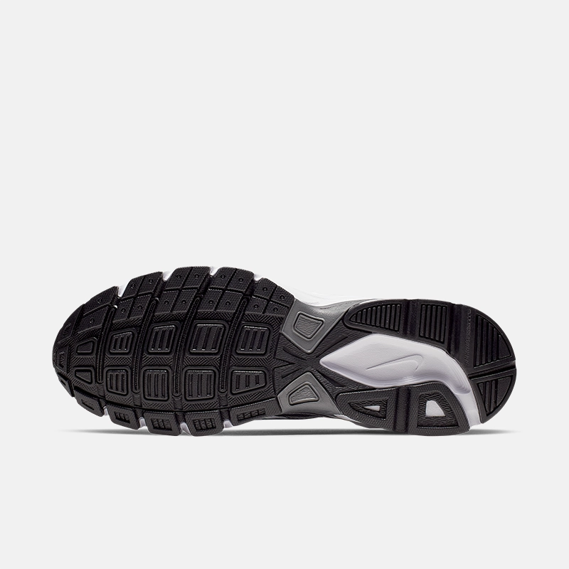 The Nike Initiator 394055 sports a design that pays homage to classic running shoes from Nike’s past, infused with the chunky, oversized look of dad shoes. The upper features a combination of mesh and synthetic leather materials. The mesh panels, predominantly in white, ensure breathability, while the synthetic leather overlays in shades of gray and navy add structure and durability.